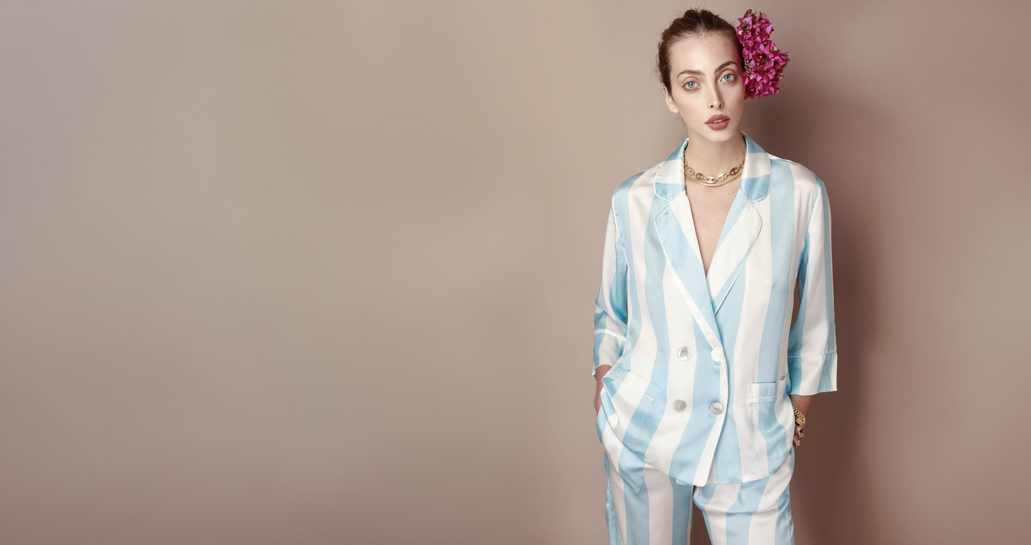 Our pieces are designed and made entirely in Italy for women who value natural materials, considered craftsmanship, and the quiet authority of dressing for themselves.